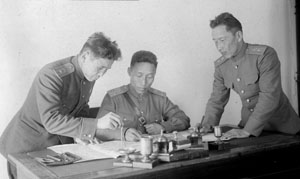 Первым в СССР военную академию имени М.В. Фрунзе закончил в 1936 г. Оюн Лакпа, следом за ним в 1940-1942 гг. в ней учились и успешно закончили Монгуш Сувак и Семен Севээн. В академии имени К.Е. Ворошилова учился генерал-майор Гессен Шоома. Впоследствии в высших военных школах также учились Тюлюш Кечил-оол, Ооржак Лопсан, Монгуш Эртине, Оюн Лопсан-Балдан.