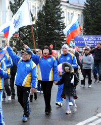Среди коллективов самой многочисленной была колонна Тувинского регионального отделения партии «Единая Россия». Она же была и одной из самых «голосистых». Под аккорды члена Союза композиторов Республики Тыва, баяниста, активиста Партии Кертик-оола Данзына единороссы распевали патриотические песни.