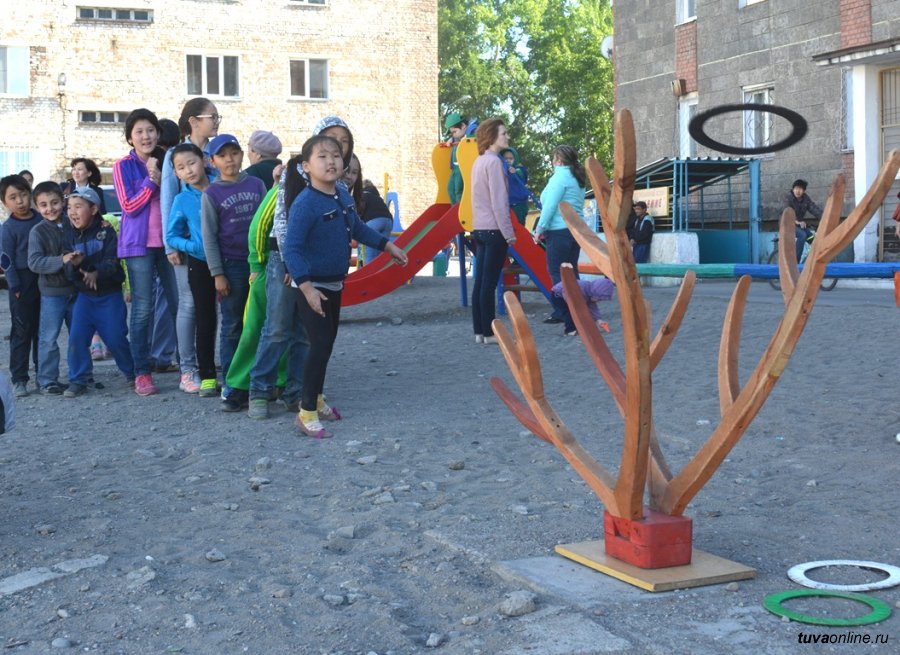 В этом году продолжается обустройство кызылских дворов детскими площадками. Небольшие детские городки «пропишутся» еще в 13 дворах. В числе первых площадки были установлены во дворах по ул. Рабочая, 250, ул. Калинина, 24. На прошлой неделе детвора отпраздновала начало школьных каникул и появление новых детских площадок во дворах по ул. Калинина, 3 и 1а, и ул. Ленина, 62. Депутаты Хурала представителей и мэрия города организовали для детей праздники, конкурсы, игры, концерты.
