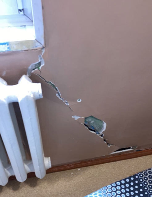 На всех объектах выявлены трещины, в здании школы с потолка отвалилась штукатурка.