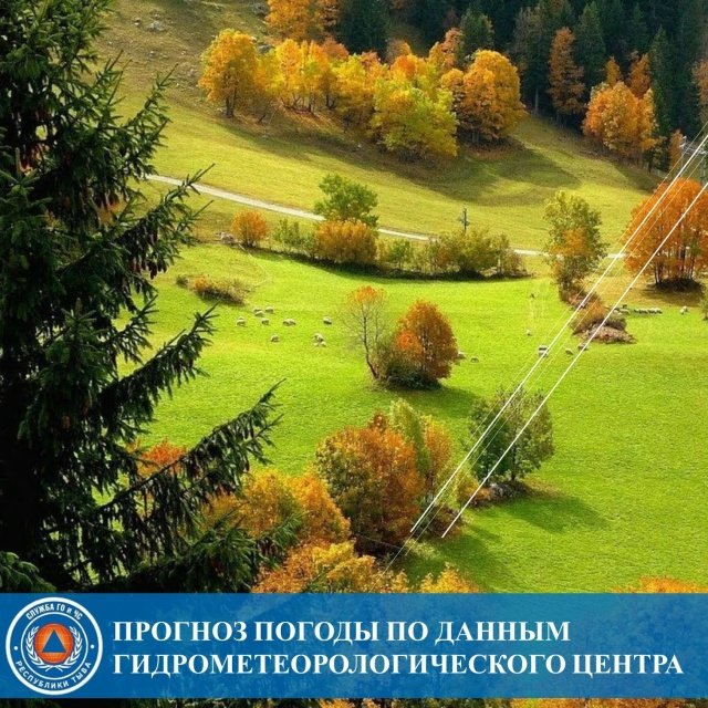 По республике прогнозируется переменная облачность, местами небольшой дождь. Ветер западный 2-7 м/с, местами порывы до 14 м/с. Температура воздуха ночью +2,+7°, местами 0,-5°. Температура воздуха днём +16,+21°, местами +9,+14°. Ночью и утром местами туман. Пожарная опасность II-III, местами V класса.