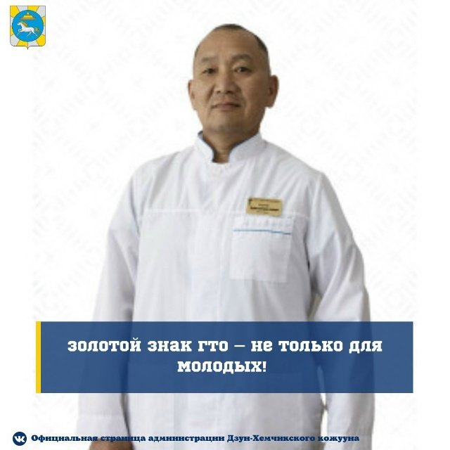 [Золотой знак ГТО – не только для молодых, доказал пример врача-хирурга Дзун-Хемчикского межкожууного медицинского центра Хуреш-оола Болат-оловича Куулара, которого сегодня в родном кожууне поздравляют с невероятным достижением. Он стал первым в Республике Тыва, кто выполнил нормативы и получил золотой знак отличия ГТО в возрастной категории 60+ лет.
