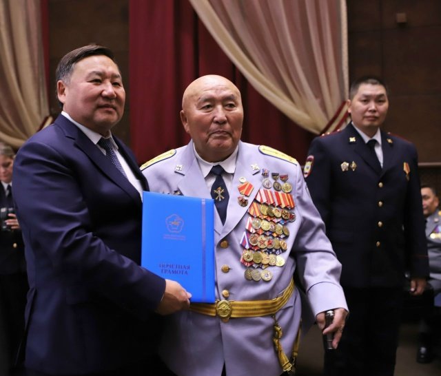 Также ко всем участникам мероприятия обратились Председатель Верховного Хурала (Парламента) республики Кан-оол Даваа, Главный федеральный инспектор по Республике Тыва Александр Вавилихин, и председатель Совета ветеранов МВД по Республике Тыва Валерий Тарыма. Они выразили теплые пожелания и лично вручили награды заслуженным сотрудникам и ветеранам.