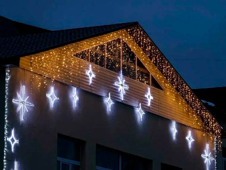 - Световые гирлянды и декоративные элементы для придания фасадам зданий особого волшебства.