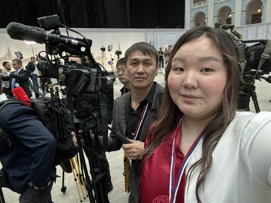 Туву на пресс-конференции представили журналисты региональных СМИ - заместитель главного редактора информагентства ''ТуваМедиаГрупп'' Гюзель Кунзет и Чай-Хаан Донгак, оператор телеканала ''Тува 24''.