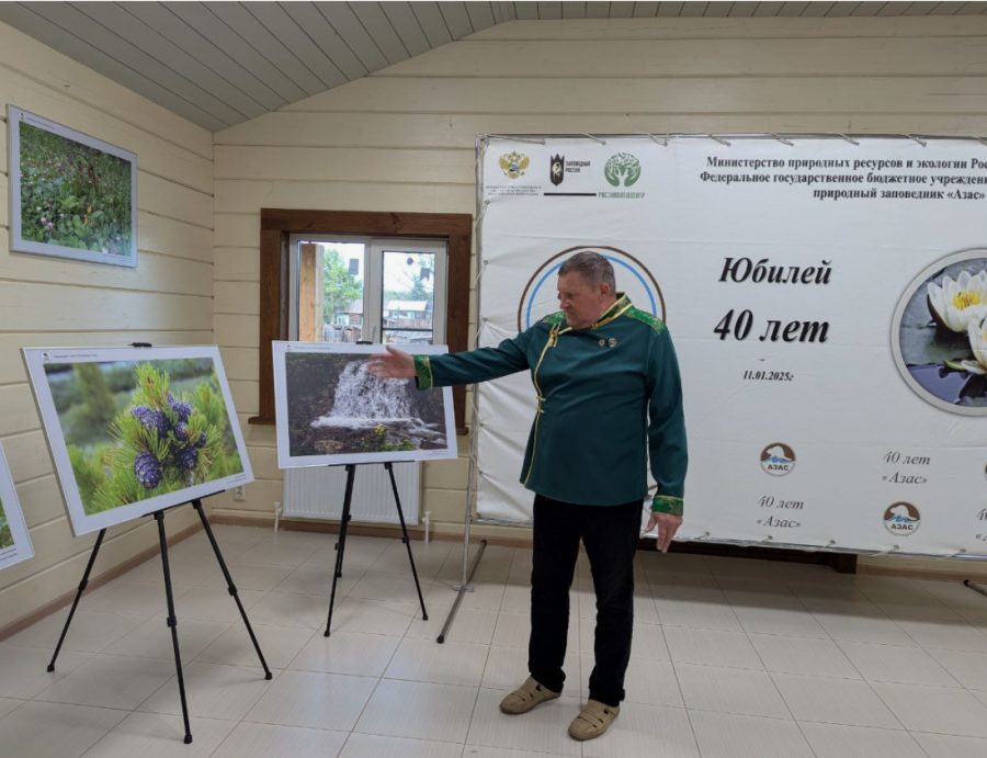 Ушедший 2025 год прошел для заповедника «Азас» под знаком его 40-летнего юбилея. Знаменательными событиями в 2025 г. стали издание фотоальбома, подготовленного к 40-летию заповедника, и персональная фотовыставка о его природе заместителя директора по научной работе Николая Карташова. За более чем 30 лет работы Николаем Карташовым и ведущим научным сотрудником Ниной Молоковой запечатлено много художественных фотокадров о первозданной красоте ландшафтов, растительном и животном мире заповедника.