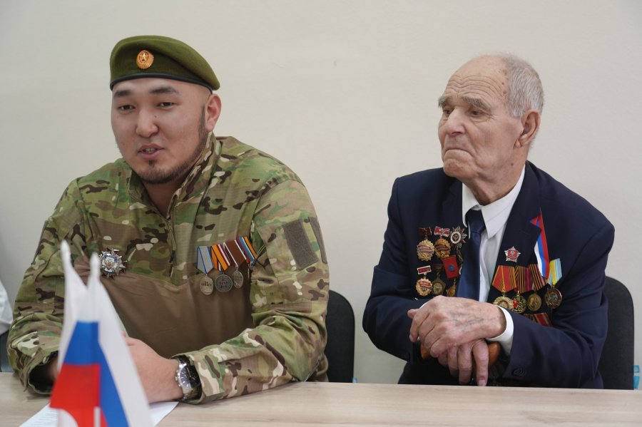 В Кызыле прошла встреча ребят из «Движения первых» с ветераном, почетным гражданином Кызыла Кириллом Марковым и участником специальной военной операции, представителем кадрового проекта «Герои Тувы» Вадимом Кара-оолом.