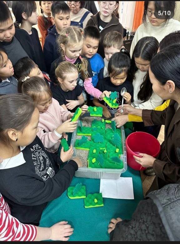 Школьники узнали от ученых о том, как благодаря соблюдению многовековых традиций в технологии добычи Чонар-Даша (агальматолита), нашим предкам удавалось сохранять месторождения почти в первозданном виде.