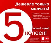 «Мобильные ТелеСистемы» (NYSE: MBT), крупнейший оператор сотовой связи в России и странах СНГ, объявляет о значительном снижении стоимости междугородних вызовов и стоимости SMS-сообщений на тарифе «5 копеек». Теперь абоненты этого тарифа смогут звонить абонентам операторов фиксированной и сотовой связи «МТС-Сибирь»[1] по «домашним» ценам – 1,40 рублей за минуту разговора. [1] В «МТС-Сибирь» входят 9 регионов: Республика Тыва, Республика Хакасия, Красноярский край, Кемеровская область, Республика Алтай, Алтайский край, Новосибирская область, Томская область, Омская область. Кроме того, снижена цена SMS-сообщения – теперь абоненты тарифа «5 копеек» смогут отправлять SMS на телефоны всех операторов сотовой связи, действующих на территории «МТС-Сибирь», по цене 85 копеек за сообщение.