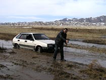 В Туве продолжаются работы по восстановлению дорожного полотна, поврежденного в результате схода весенних склоновых вод. По сводке МЧС Тувы от 22 апреля, в Тандинском районе на муниципальной автодороге Бай-Хаак - Балгазын талыми водами размыло участок с 20 по 46 км. Проезд на этом направлении закрыт, сообщение между селами осуществляется по более длинному объездному маршруту Бай-Хаак - Целинное - Балгазын. На аварийном участке дежурит наряд ГИБДД, восстановительные работы ведутся Бай-Хаакским ДРСУ и ОАО «ДЭП 366».