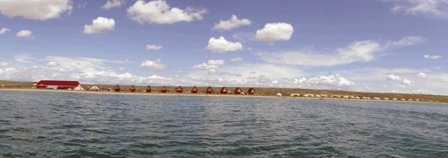 В озере водятся щука и форель. Если есть желание порыбачить, то надо заключить договор с Росприроднадзором прямо в Эрзинском районе, и можно по квоте половить рыбку. Недалеко находится чабанская стоянка, на которой занимаются рыбной ловлей на коммерческой основе. Мы покупаем щуку, и ее готовит либо наш повар, либо сами туристы на костре. Питаются гости кто как пожелает. Есть и уютный ресторанчик, выполненный в национальном стиле, вся мебель в нем сделана на заказ. В меню предусмотрены блюда национальной кухни. Люди могут сами себе готовить, если есть желание, в домиках есть печки типа «буржуек», возле домов и юрт обязательно стоит мангал.