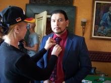 На днях в Туву со съемок вернулся Эдуард Ондар. Оказывается, он участвует еще в одном проекте казахских кинематографистов. Это фильм «Кенже» («Младший») Ермека Турсунова. Режиссер увидел тувинского артиста в ленте «Жаужурек мын бала» («Отважные сердца тысячи детей»), что вышла в свет в Алма-Ате на «Казахфильме» в прошлом году. После этого решил пригласить «Чингисхана» на съемки новой работы. Кстати, в Кызыле «Отважных…» показывали в Центре русской культуры в 2012-м. Сейчас для жителей среднеазиатской процветающей страны наш земляк стал своим.