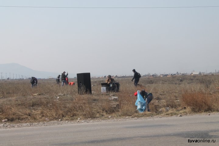 19 апреля на въезде в район Левобережных дач вовсю кипела работа – 20 волонтеров Кызылского транспортного техникума убирали территорию вдоль дороги, ведущую к первой автобусной остановке. А им навстречу со стороны дач шла большая группа людей 40-50, члены садоводческого общества № 6 (председатель – Маадыр Оюн), убиравшая многочисленные целлофановые пакеты и пластиковые бутылки. Инициатором этого субботника стал комитет Хурала представителей г. Кызыла по вопросам ЖКХ, благоустройства, транспорта и дорог. Глава города Дина Оюн и председатель комитета Роман Поманисочкин трудились вместе со всеми.