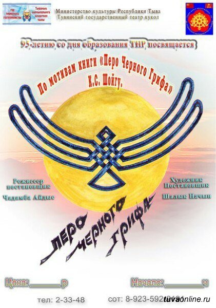 Кукольно-пластический спектакль "Перо черного грифа" поставлен по мотивам произведения Кужугета Серээевича Шойгу и рассказывает о детстве, молодости и любви к родному краю. Главные герои, отец и сын, делятся друг с другом сокровенным: старший - воспоминаниями, младший - мечтами. Этот замечательный спектакль без всякого пафоса и навязчивости представляет главные ценности для человека, передает завет любить и беречь свою малую родину.