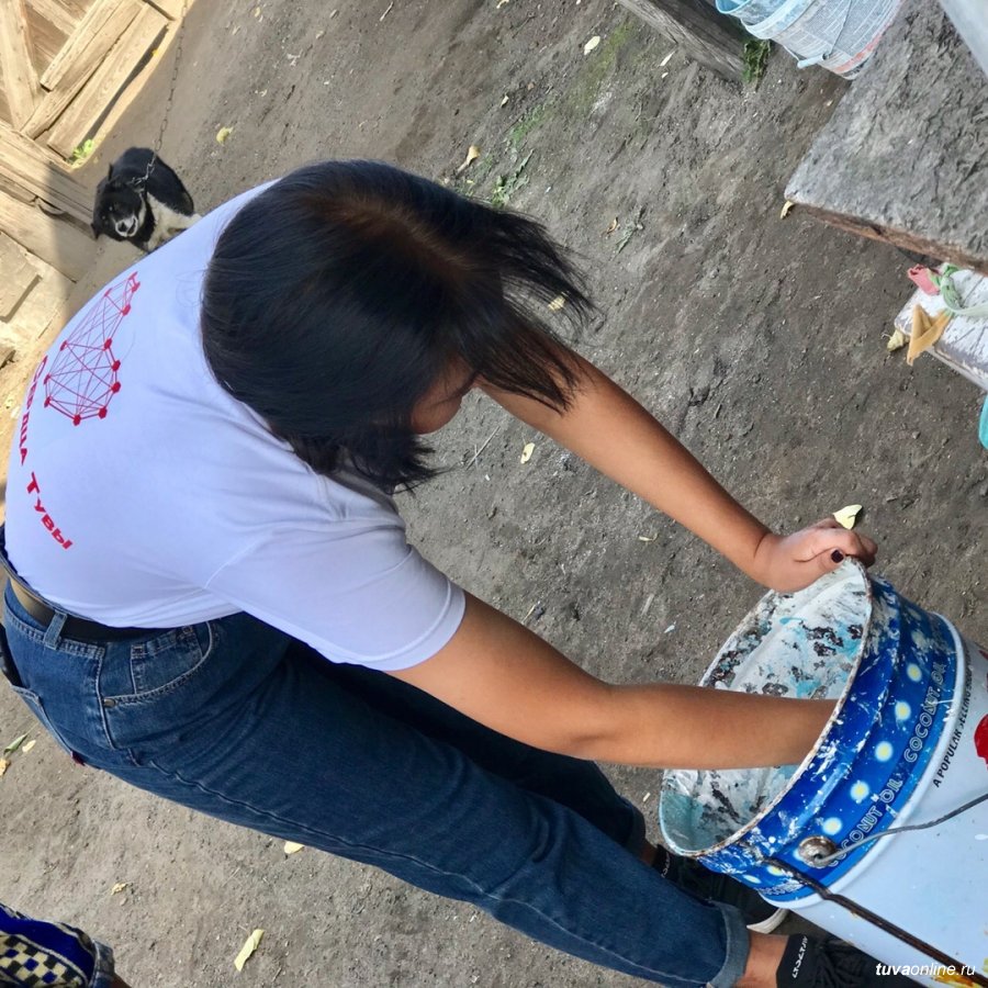 18 сентября активисты Молодежного движения "Добрые Сердца Тувы" в рамках социального проекта "Мне нравится помогать людям" или "Кижилерге дуза кадарынга ынак мен" помогли с побелкой дома, 68-летней пенсионерке Валентине Салчаковне. Бабушка не могла сама привести в порядок квартиру, поэтому ребята с внуком бабушки по просьбе дочке, которая проживает в городе в Москве, помогли побелить ей квартиру, стряхнуть ковры.