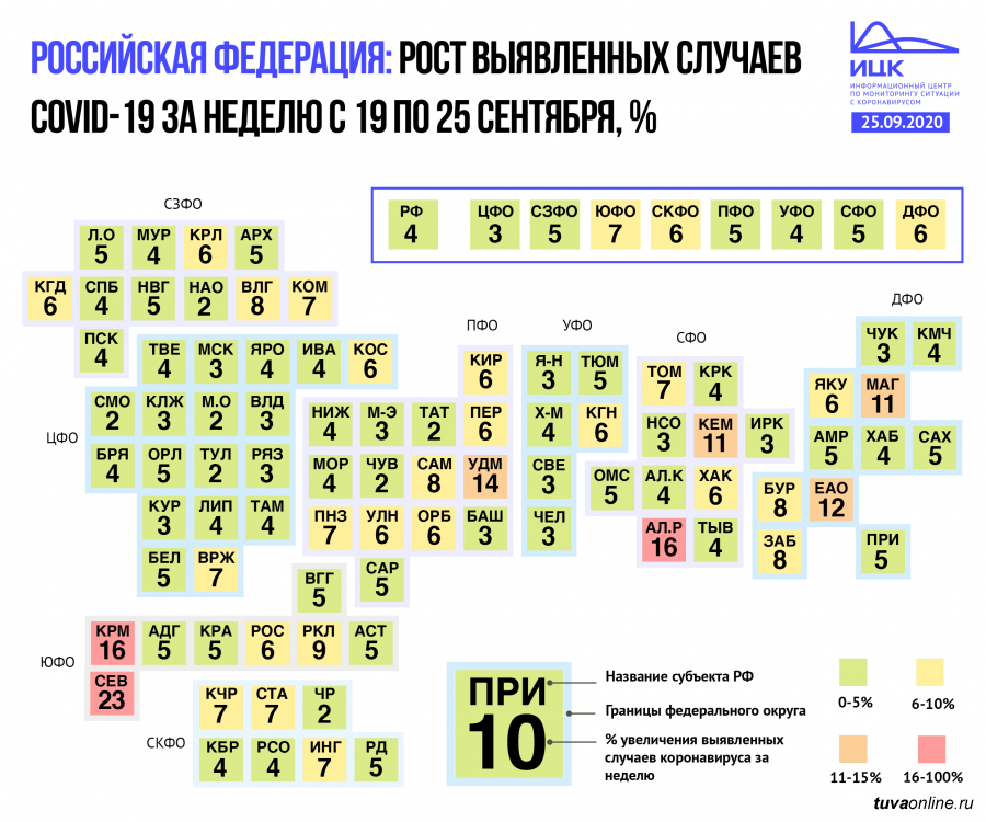 эту позицию с Приволжским и Северо-Западным федеральными округами. Всего на 25 сентября в
