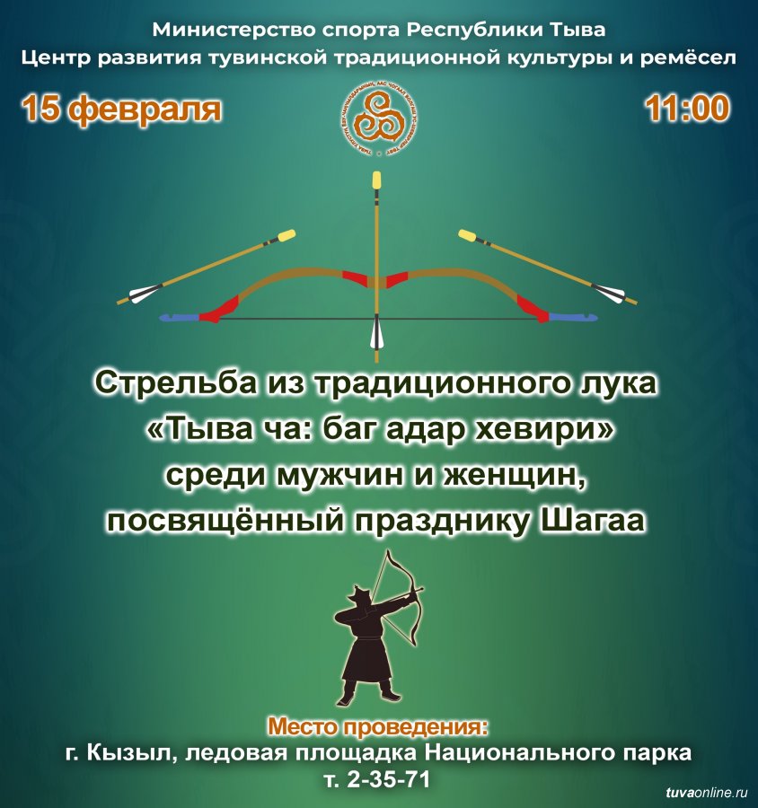 15 февраля в Национальном парке Тувы пройдут соревнования по стрельбе из традиционного лукаМинистерство спорта Республики Тыва и Центр тувинской культуры объявляют о проведении Республиканского турнира по стрельбе из традиционного лука «Тыва ча: баг адар хевири» среди мужчин и женщин, посвящённого празднику Шагаа.
