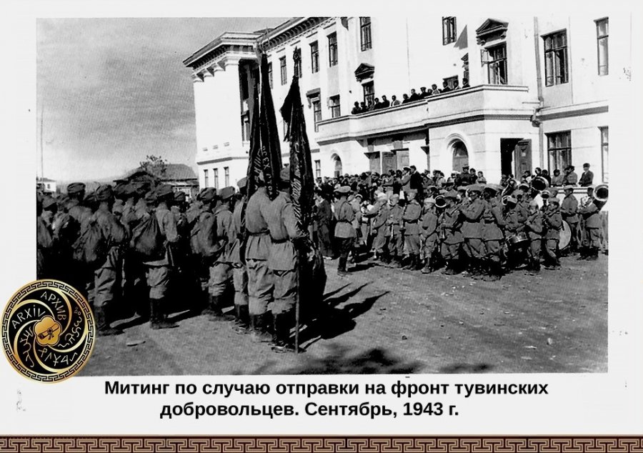 «…1 сентября г. Кызыл столица Тувинской Народной Республики провожала своих сынов на фронт. Рано утром перед Домом правительства собралось около двух тысяч трудящихся города. Состоялся митинг, открыла его Председатель Малого Хурала Тувинской Народной Республики тов. Анчима.