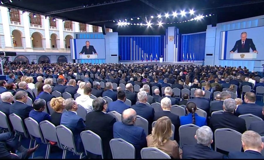 Президент России Владимир Путин обратился с ежегодным посланием к Федеральному собранию в московском Гостином Дворе. В зале – сенаторы, депутаты, главы всех 89-ти регионов России, в том числе и 4-х новых – Донецкой и Луганской Народных Республик, Запорожской и Херсонской областей, известные деятели культуры. Также среди гостей участники спецоперации. В своей речи Президент подчеркнул, что он выступает в сложное и рубежное для нашей страны время. Говорил о причинах специальной военной операции, которая была начата для обеспечения безопасности и целостности нашей страны.