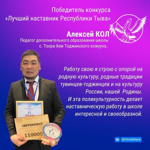 Победителем конкурса "Лучший наставник Республики Тыва" стал Алексей Кол