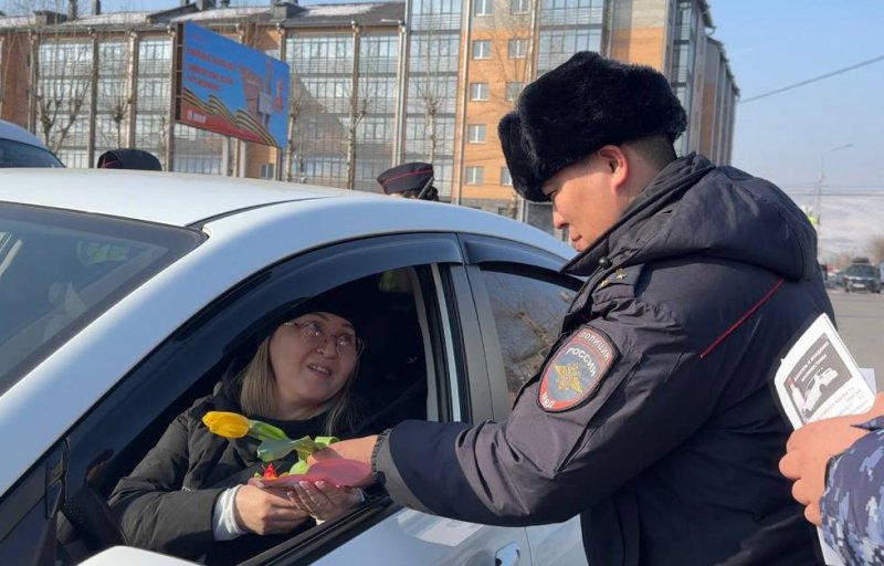 Накануне в центральной части Кызыла проведена акция, посвященная Международному женскому дню. В этом году праздничное мероприятие профилактической направленности поддержали сотрудники оперативных подразделений МВД по Республике Тыва – отделения по борьбе с противоправным использованием информационно-коммуникационных технологий, управления уголовного розыска, Центра по противодействию экстремизму, оперативно-розыскной части по обеспечению государственной защиты, а также субъекты профилактики в лице военной автомобильной инспекции, Мэрии г. Кызыла и добровольной народной дружины «Енисей». При этом особая роль отводилась незаменимым помощникам госавтоинспекторов – юным инспекторам движения Гимназии № 9 и курсантам Кызылского президентского кадетского училища.