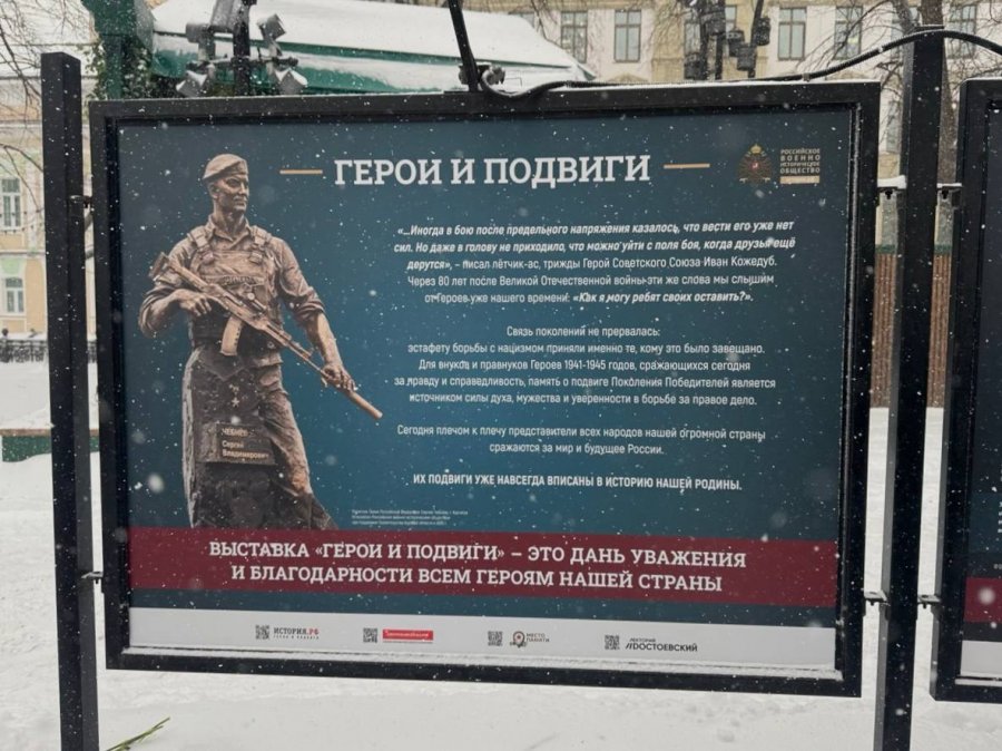 На Гоголевском бульваре в Москве состоялось открытие фотовыставки Российского военно-исторического общества «Герои и подвиги», посвященная Героям – участникам СВО и Сынам полков – юным участникам Великой Отечественной войны.