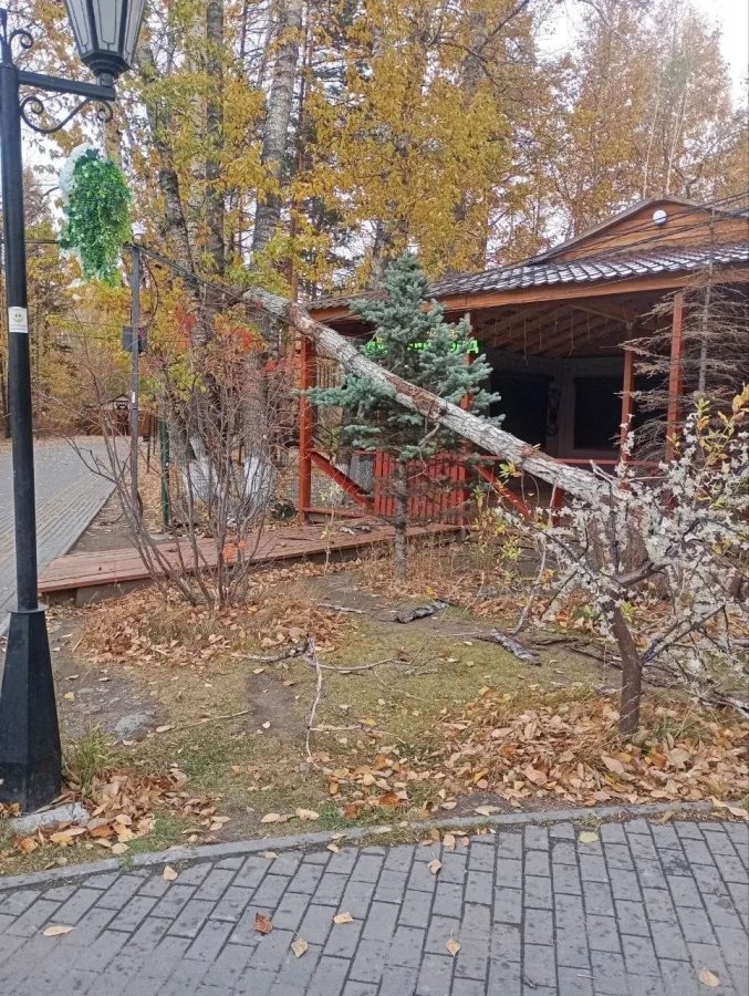 Недавно одно из аварийных деревьев рухнуло после сильного ветра, к счастью, обошлось без пострадавших.